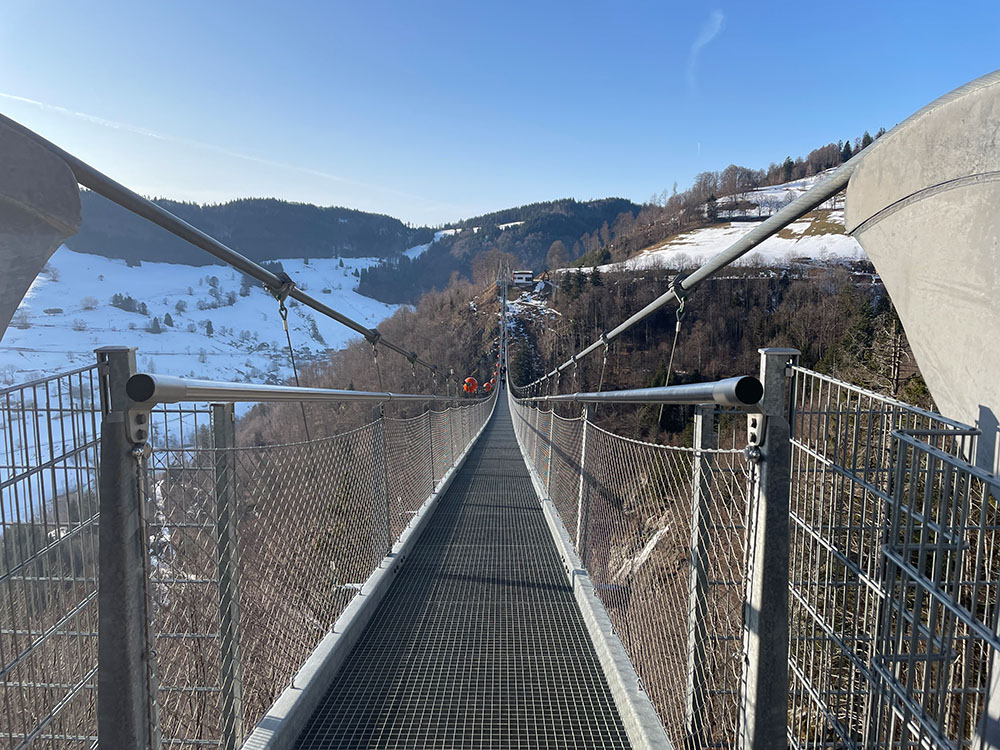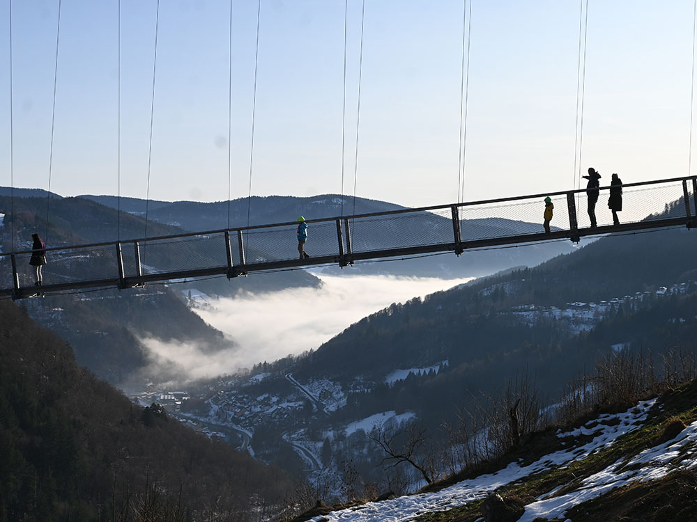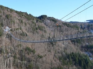 In Todtnauberg spannt sich eine 450 mir lange Hängebrücke über das Tal. An der höchsten Stelle sind es 120 mir Höhe bis zum Talgrund.