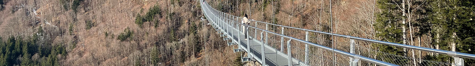 In Todtnauberg spannt sich eine 450 mir lange Hängebrücke über das Tal. An der höchsten Stelle sind es 120 mir Höhe bis zum Talgrund.